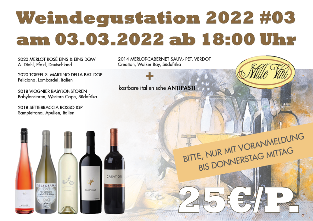 Wir heben die Mille Vini Weinabende auf das nächste Level und gestalten sie noch genussvoller. Unsere Weinverkostungen werden sich nun auf besonders hochwertige und besondere Weine konzentrieren und so gehobenen Genuss in den Mittelpunkt stellen.