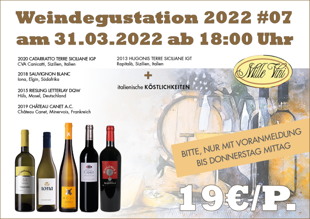 Wir heben die Mille Vini Weinabende auf das nächste Level und gestalten sie noch genussvoller. Unsere Weinverkostungen werden sich nun auf besonders hochwertige und besondere Weine konzentrieren und so gehobenen Genuss in den Mittelpunkt stellen.