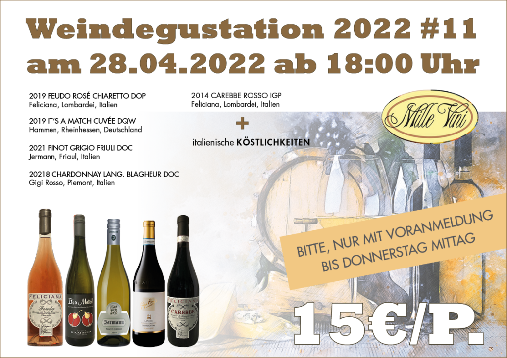 Wir heben die Mille Vini Weinabende auf das nächste Level und gestalten sie noch genussvoller. Unsere Weinverkostungen werden sich nun auf besonders hochwertige und besondere Weine konzentrieren und so gehobenen Genuss in den Mittelpunkt stellen.