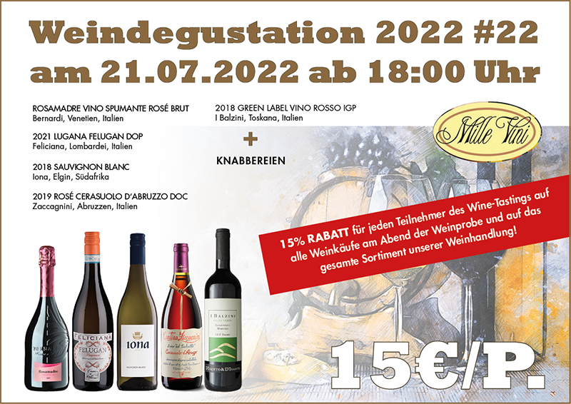 Wir heben die Mille Vini Weinabende auf das nächste Level und gestalten sie noch genussvoller. Unsere Weinverkostungen werden sich nun auf besonders hochwertige und besondere Weine konzentrieren und so gehobenen Genuss in den Mittelpunkt stellen.