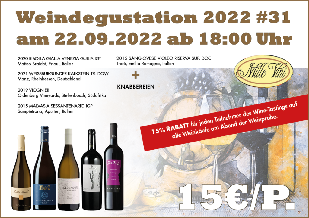 Wir heben die Mille Vini Weinabende auf das nächste Level und gestalten sie noch genussvoller. Unsere Weinverkostungen werden sich nun auf besonders hochwertige und besondere Weine konzentrieren und so gehobenen Genuss in den Mittelpunkt stellen.