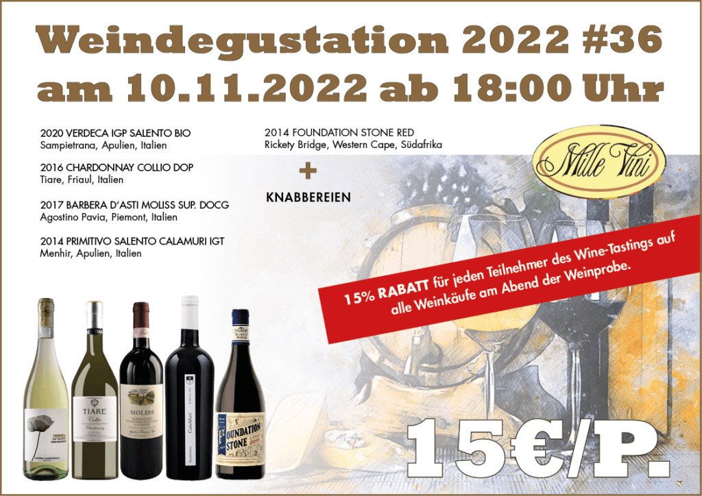 Wir heben die Mille Vini Weinabende auf das nächste Level und gestalten sie noch genussvoller. Unsere Weinverkostungen werden sich nun auf besonders hochwertige und besondere Weine konzentrieren und so gehobenen Genuss in den Mittelpunkt stellen.