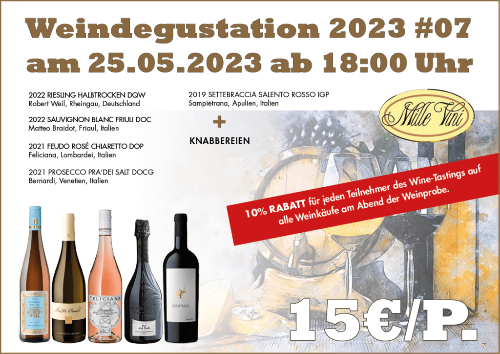 Wir heben die Mille Vini Weinabende auf das nächste Level und gestalten sie noch genussvoller. Unsere Weinverkostungen werden sich nun auf besonders hochwertige und besondere Weine konzentrieren und so gehobenen Genuss in den Mittelpunkt stellen.