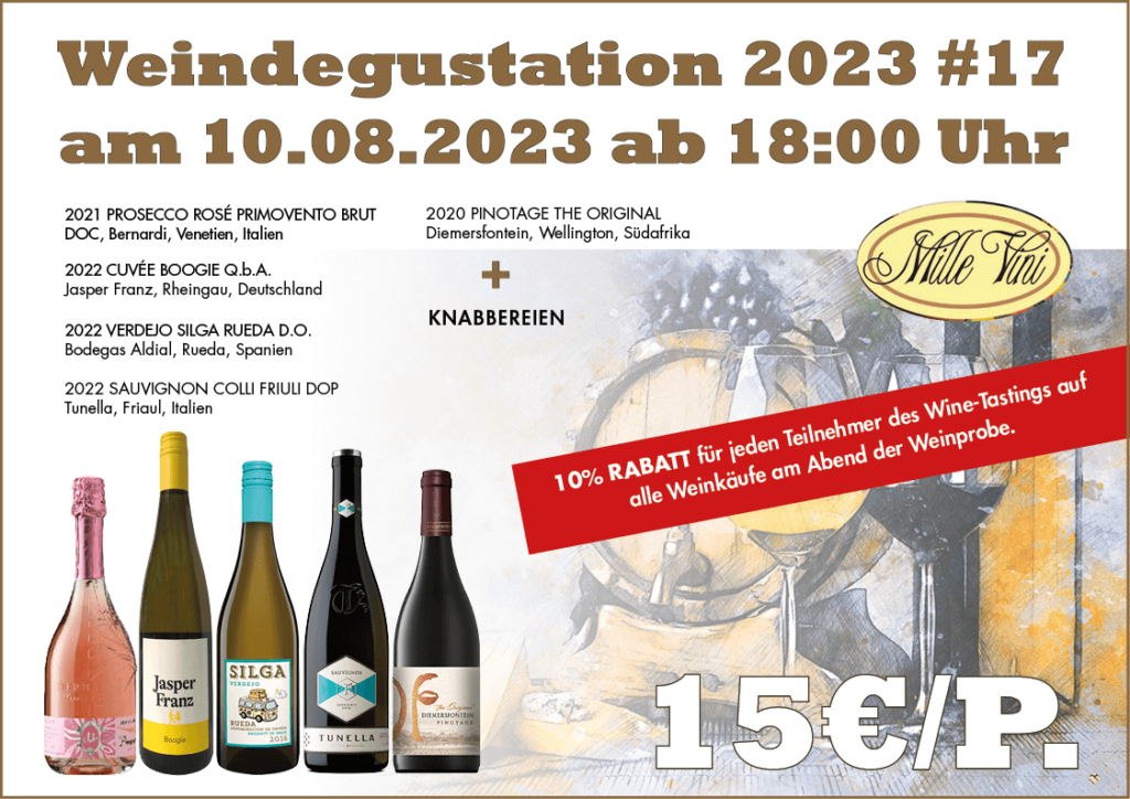 Wir heben die Mille Vini Weinabende auf das nächste Level und gestalten sie noch genussvoller. Unsere Weinverkostungen werden sich nun auf besonders hochwertige und besondere Weine konzentrieren und so gehobenen Genuss in den Mittelpunkt stellen.