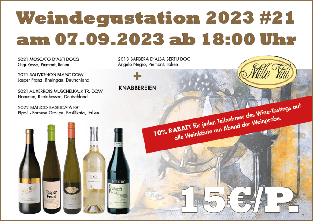 Wir heben die Mille Vini Weinabende auf das nächste Level und gestalten sie noch genussvoller. Unsere Weinverkostungen werden sich nun auf besonders hochwertige und besondere Weine konzentrieren und so gehobenen Genuss in den Mittelpunkt stellen.