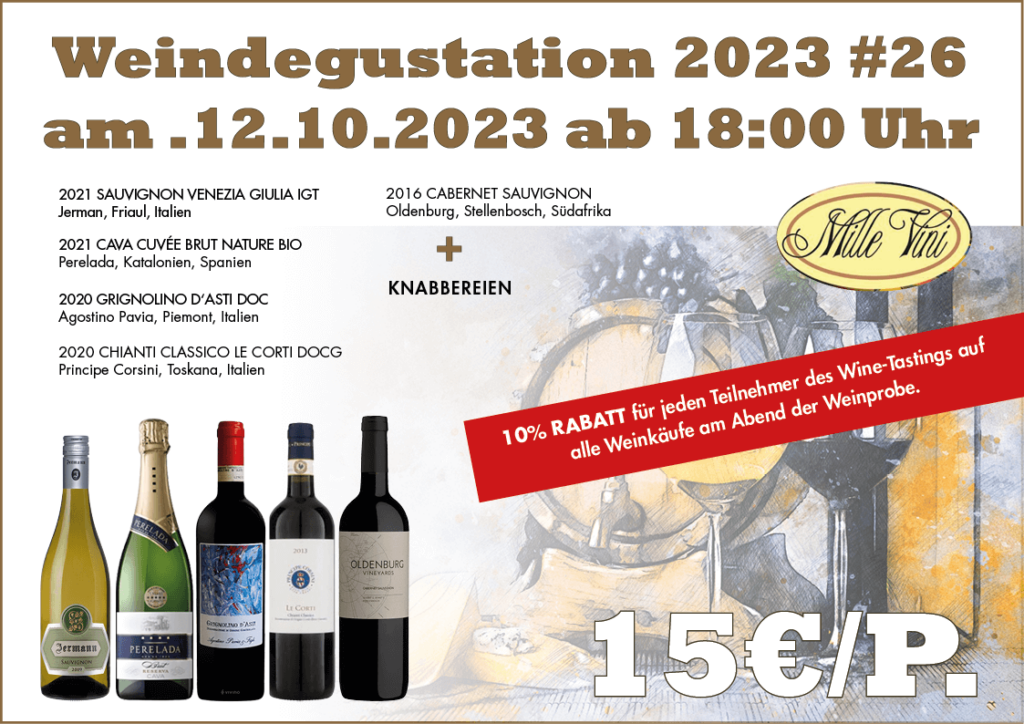 Wir heben die Mille Vini Weinabende auf das nächste Level und gestalten sie  noch genussvoller. Unsere Weinverkostungen werden sich nun auf besonders hochwertige und besondere Weine konzentrieren und so gehobenen Genuss in den Mittelpunkt stellen.